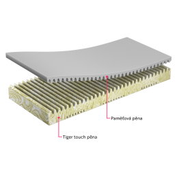 2. Studená pěna Tiger touch 55 kg/m³ - vyniká vysokou pružností, prodyšností a velmi dlouhou životností. Díky otevřené buněčné struktuře zajišťuje vynikající prodyšnost a hygienu, což přispívá k svěžímu a zdravému spánkovému prostředí.
