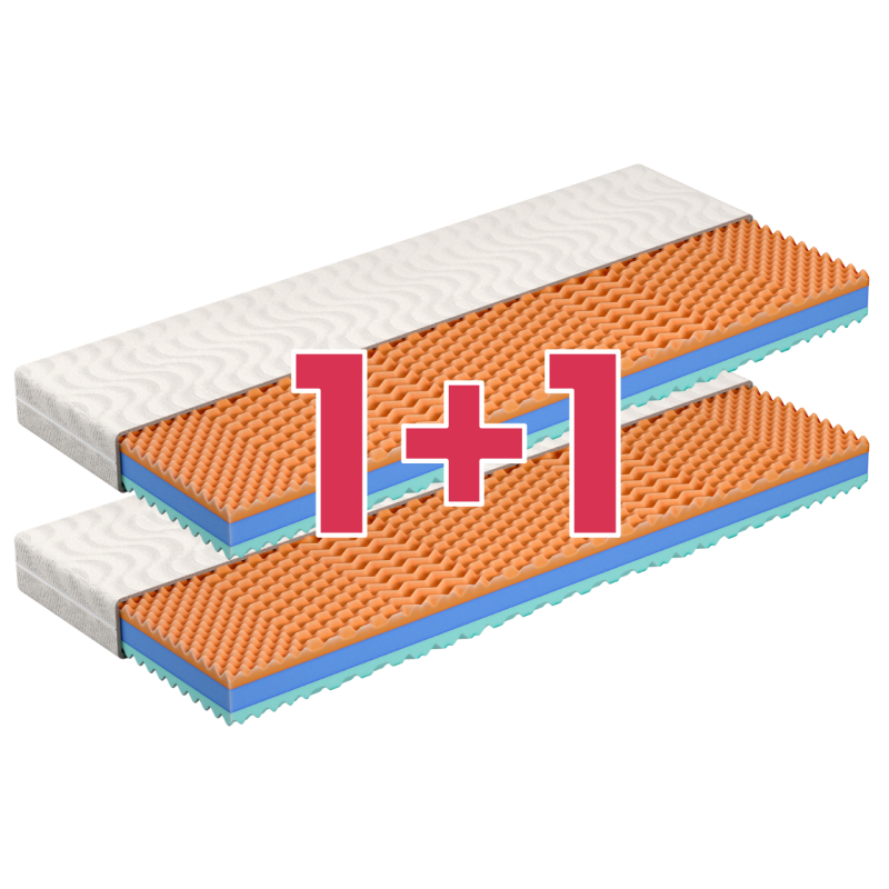Při akci 1+1 do košíku vkládáte 1 kus akce a obdržíte 2 kusy matrací, pokud do košíku vložíte 2 kusy akce, obdržíte 4 kusy matrací.
