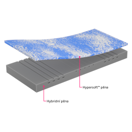 Horní vrstvu tvoří 4 cm obláčkové hypersoft GT pěny, která se perfektně přizpůsobí Vašemu tělu. Pod ní je 14 cm vysoká středně tuhá hybridní pěna – pevnější, stabilní, a přesně taková, aby podržela tam, kde je to potřeba.