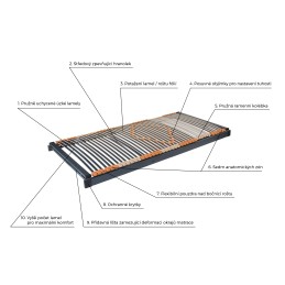 Skutečná velikost roštu je vždy o 1 cm užší a 5 cm kratší než uvedený rozměr pro správné uložení roštu s matrací do rámu postele.
